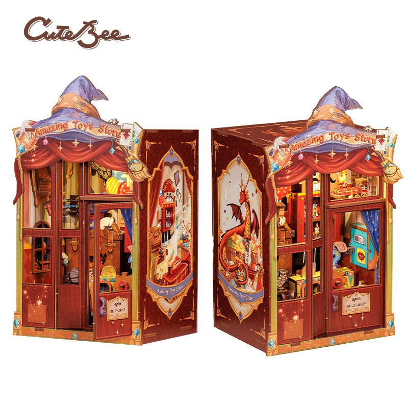Het vroege ochtendzonlicht brak door de mist boven de stad en stroomde het einde van de oude straat binnen. Een kleine, chique speelgoedwinkel baadt in het warme ochtendlicht. Een messing bord met de letters "Amazing Toys Store" hangt boven de rustieke houten deur. Geopend van 03:21 tot 28:67. Wanneer de zon in de speelgoedwinkel schijnt, betekent dit dat het tijd is om open te gaan.